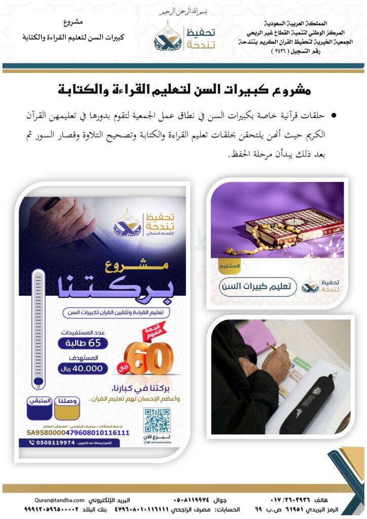 مشروع كبيرات السن لتعليم القراءة والكتابة